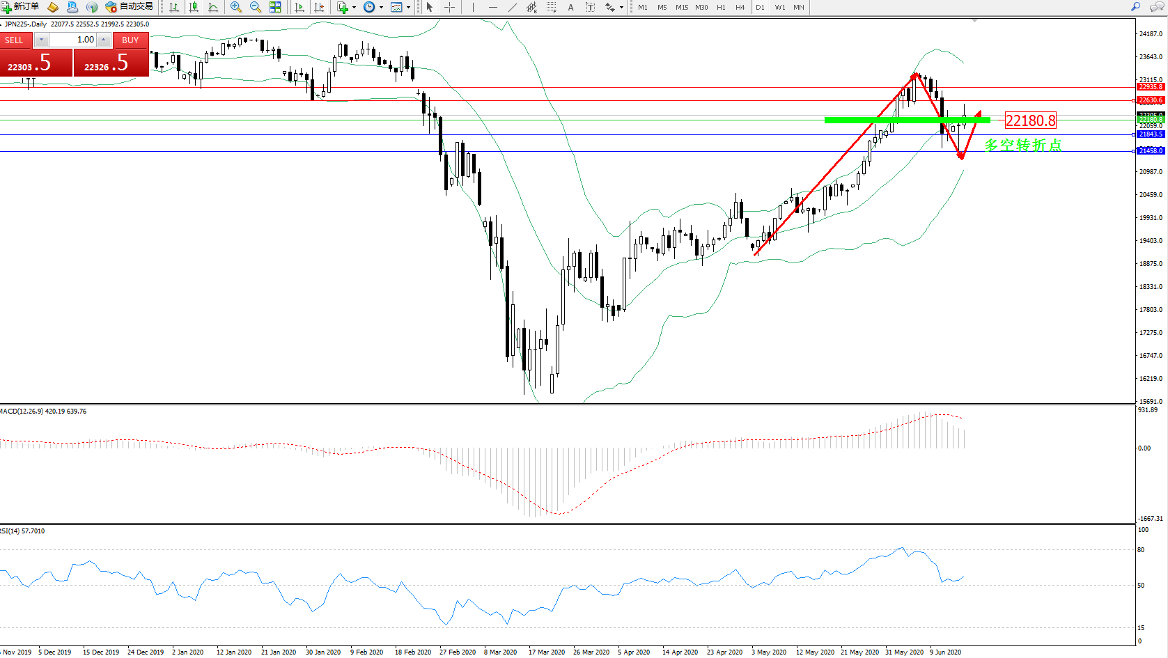 日经225指数616日(周二)收盘上涨1031.55点,涨幅4.79%,报22562.50点。日本央行将基准利率维持在-0.1%不变。将10年期国债收益率目标维持在0%附近不变。如果需要,日本央行将毫不犹豫地采取更多行动。特别贷款计划规模约为110万亿日元(此前规模为75万亿日元)。保持资产购买计划。如果需要,将毫不犹豫采取额外的宽松措施。预期短期、长期利率维持在当前水平。日本经济在一段时间内将保持极度严峻形势。下调当前通胀预期。疫情对经济的影响存在很高的不确定性。将提供充足的日元、外汇基金拨备,没有上限。将继续积极购买ETF、日本地产信托基金(J-REITs)。私人消费大幅下降。一段时间内CPI年率可能为负。