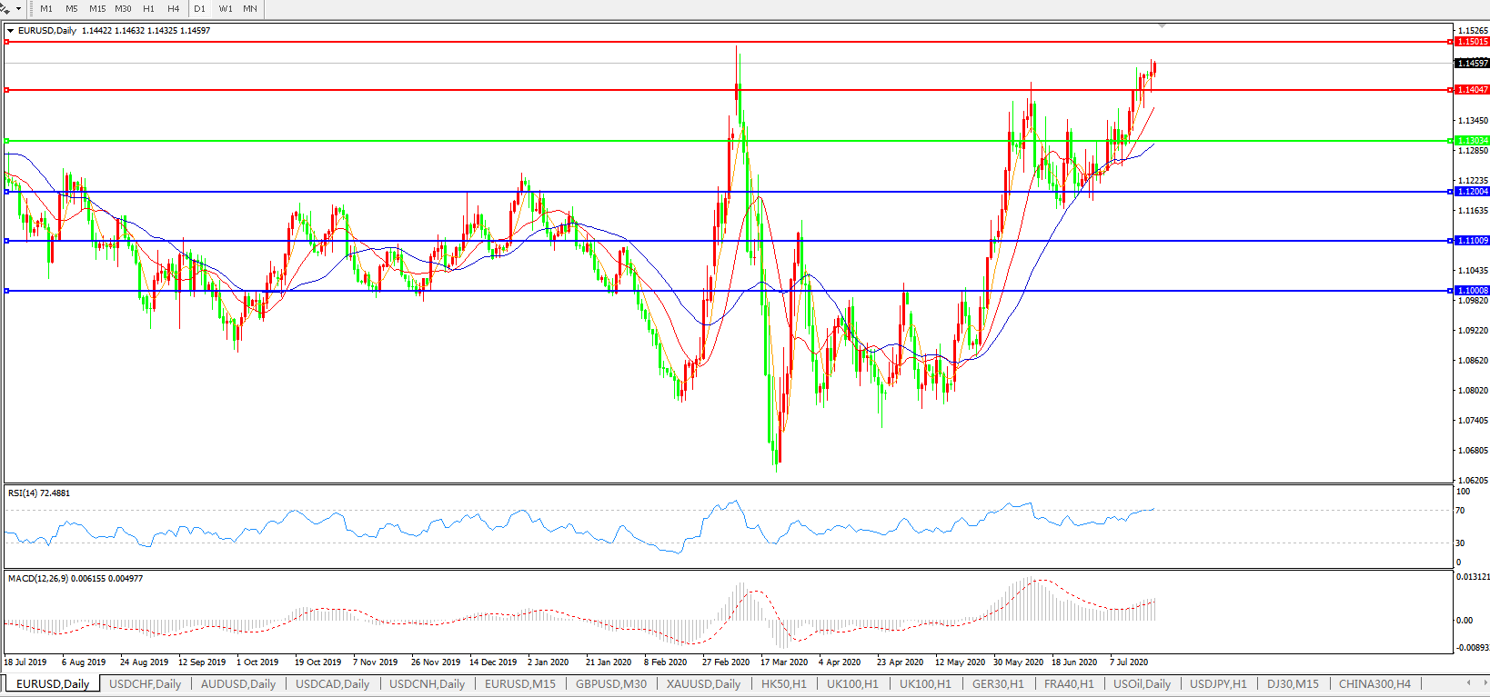欧元兑美元EURUSD 日线图: