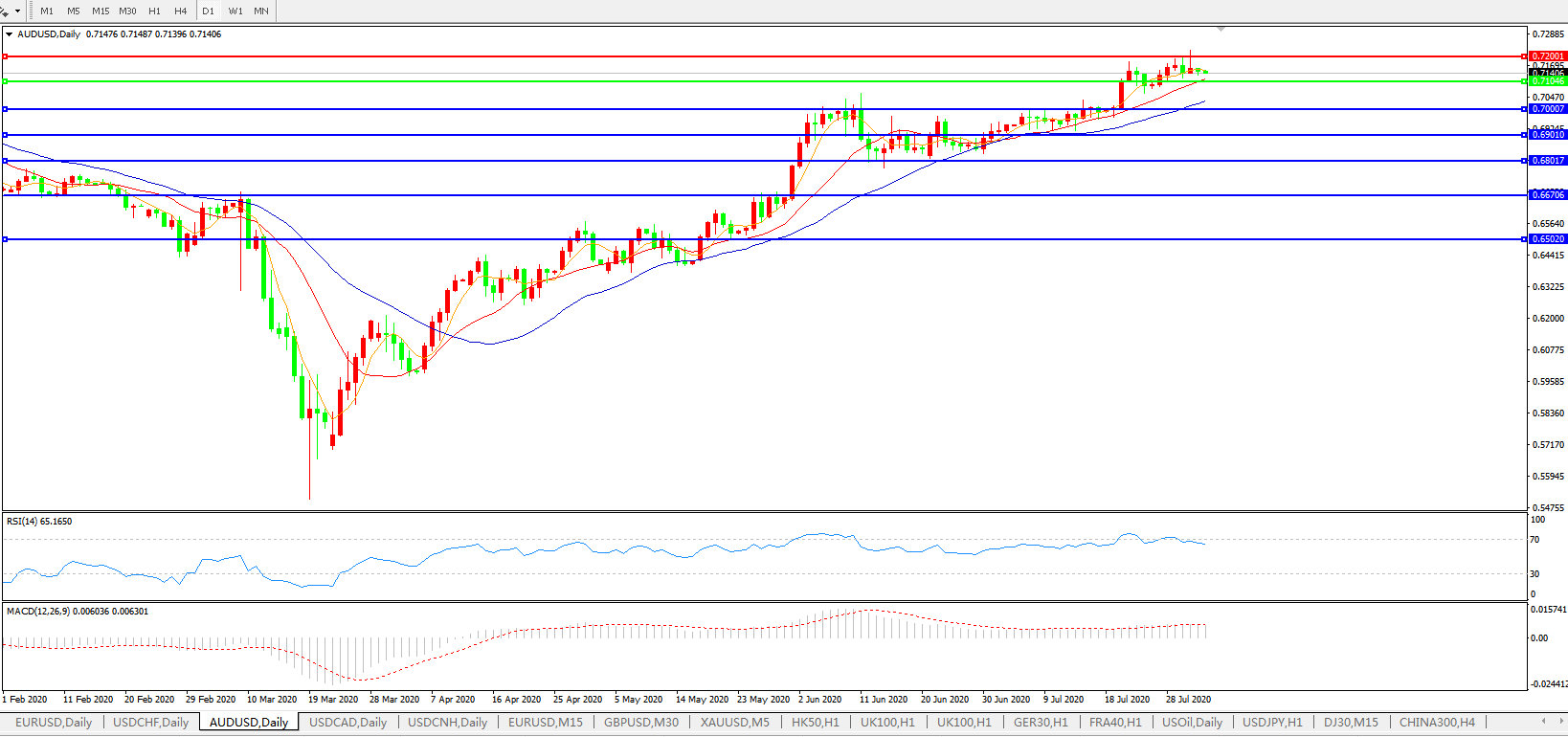澳元兑美元AUDUSD    日线图: