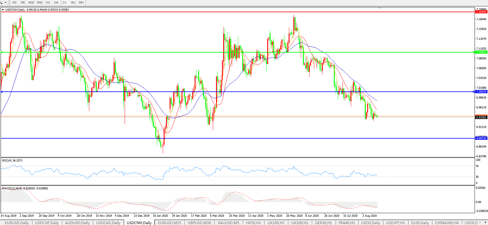 美元兑人民币USDCNH    日线图: