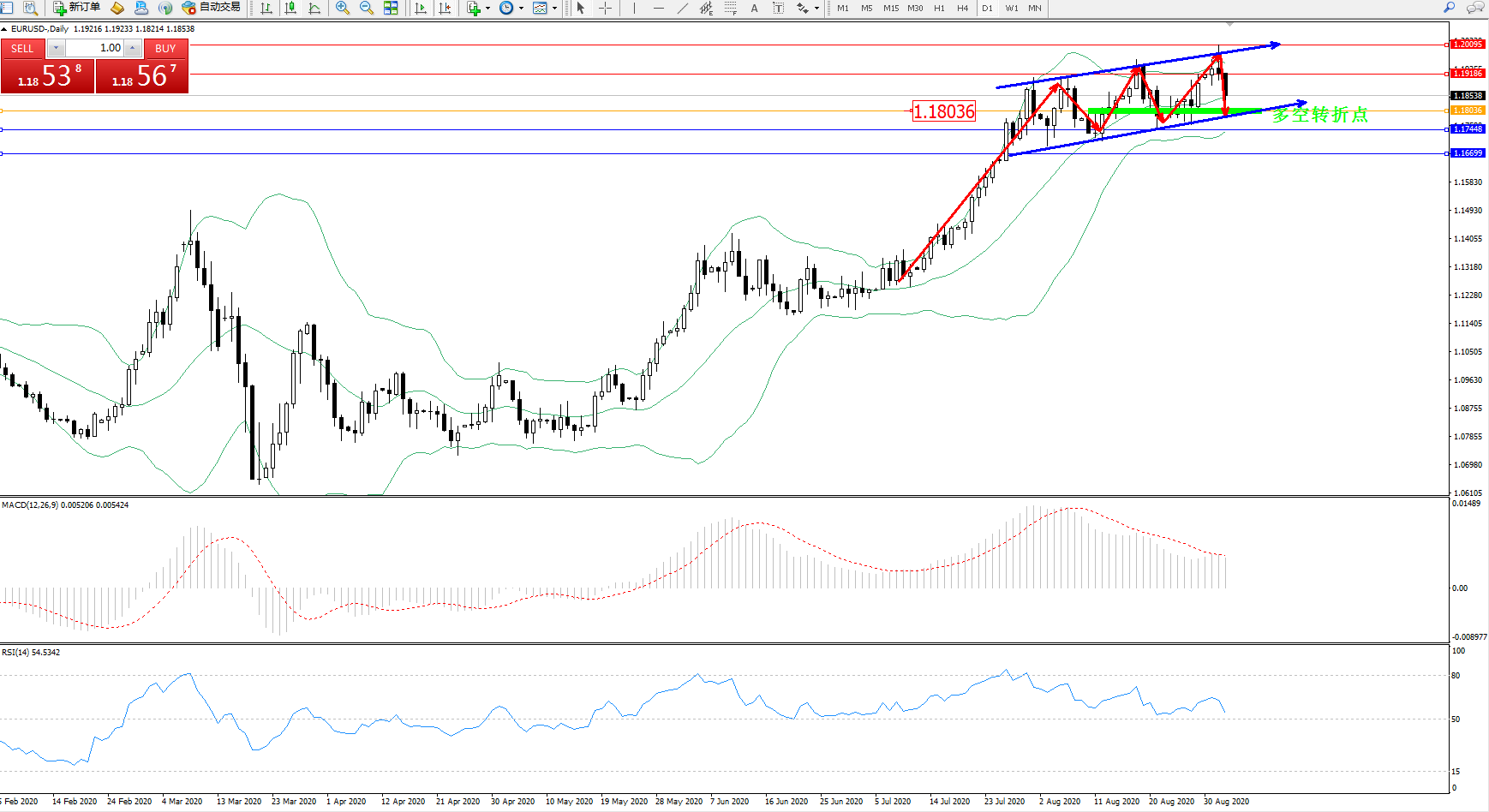 交易策略:1.18036上方看涨,目标1.19186、1.20095