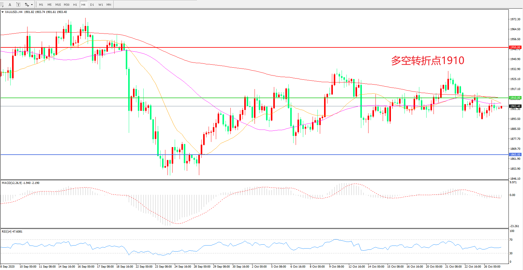 周一(10月26日),疫情凶猛和美国财政刺激无望推高美元走势,但在新冠疫情和11月总统大选的诸多变数之下,避险情绪悄然蔓延,现货黄金延续低位震荡走势,收报1902.50美元/盎司。当前黄金市场的注意力都集中在大选上,无论谁当选,美国都会推出下一轮刺激,也就都会推动金价走高,但大选本身的巨大不确定性仍然让市场相当紧张。