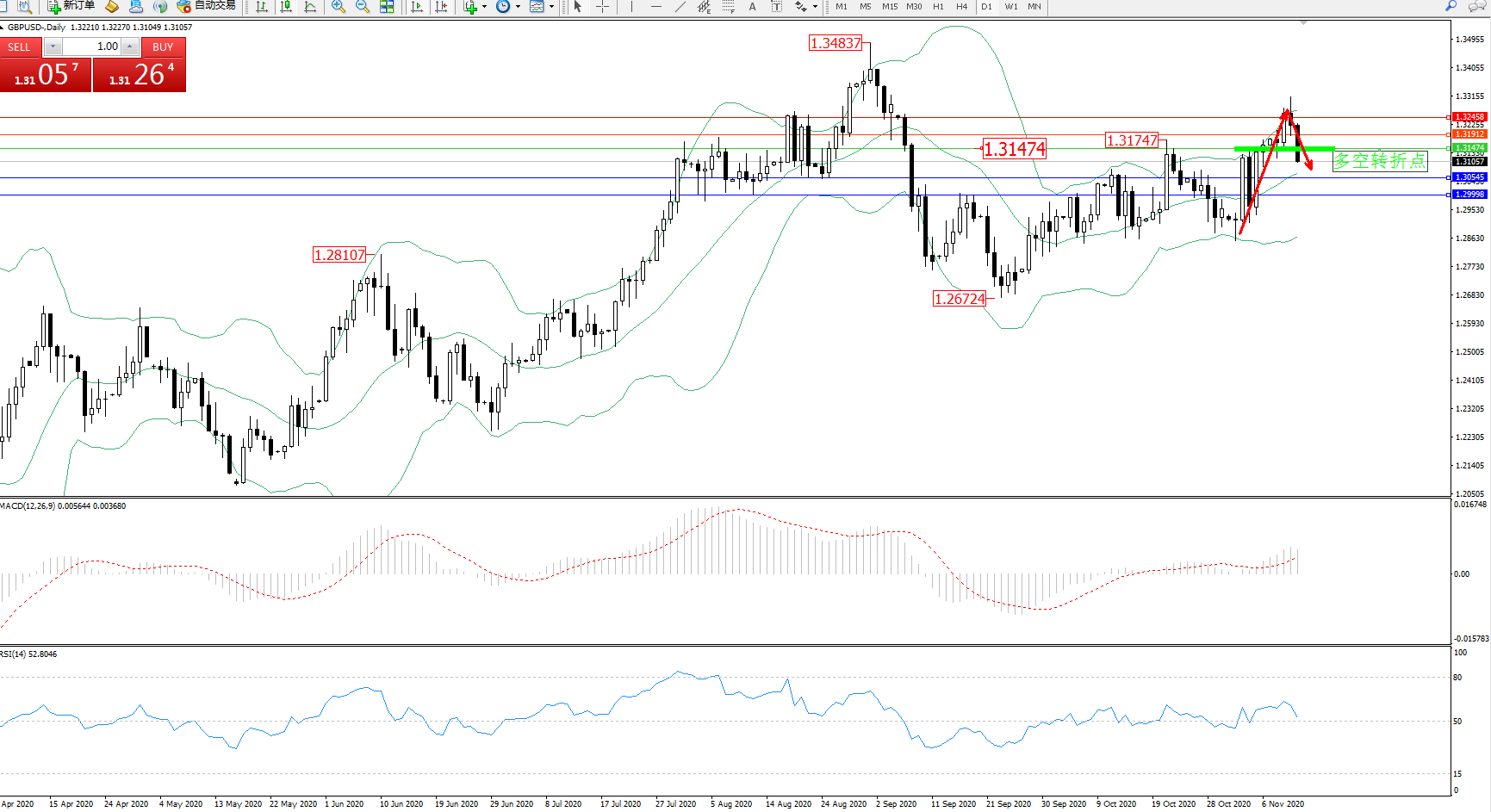 备选策略:1.31474上方看涨,目标1.31912、1.32458