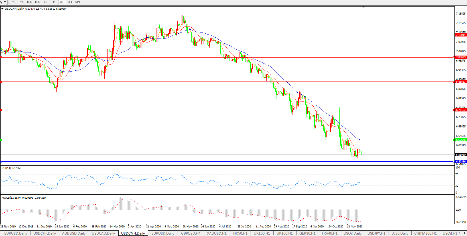 美元兑人民币USDCNH 日线图: