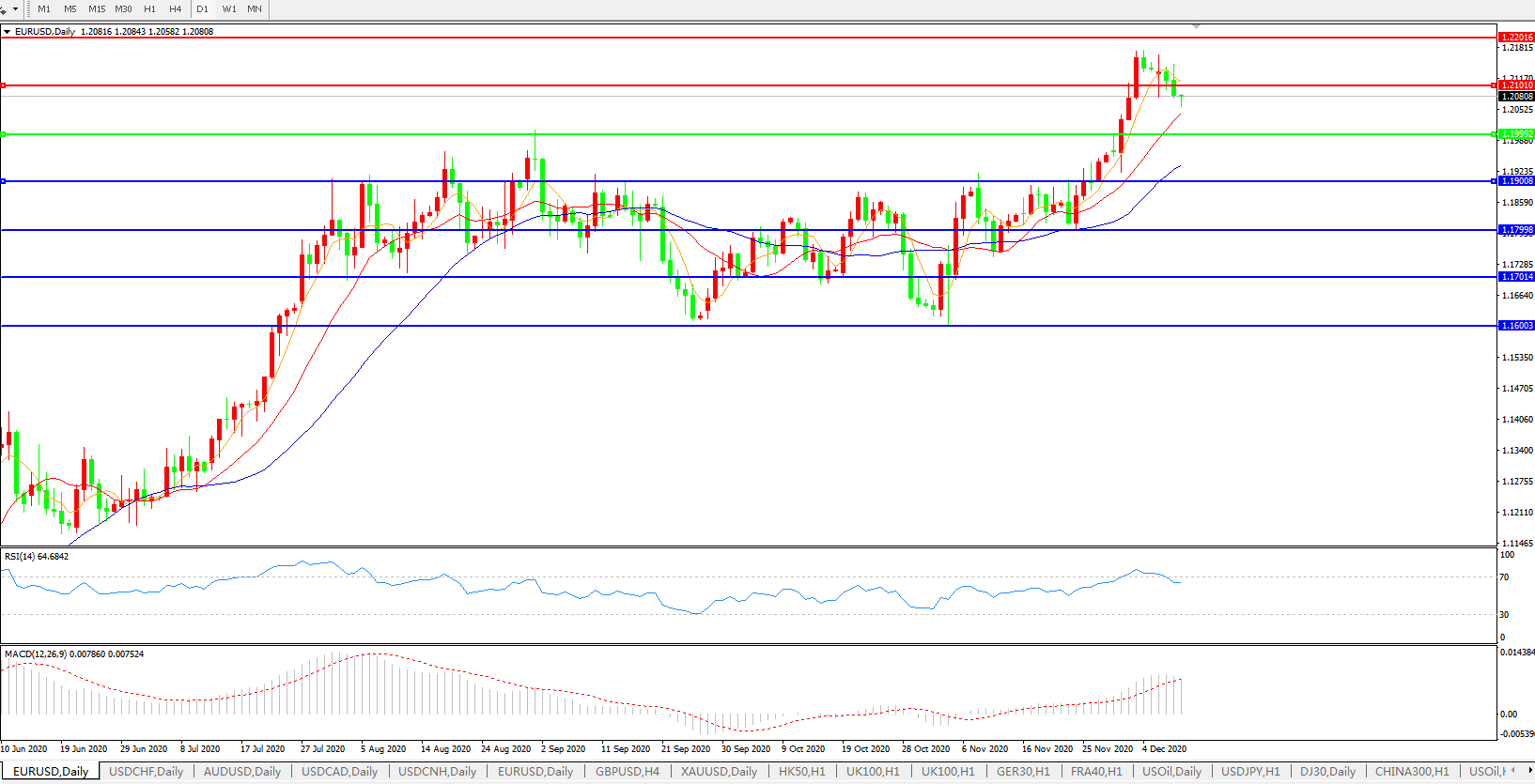 欧洲疫情愈演愈烈,欧美退守1.21关口下方