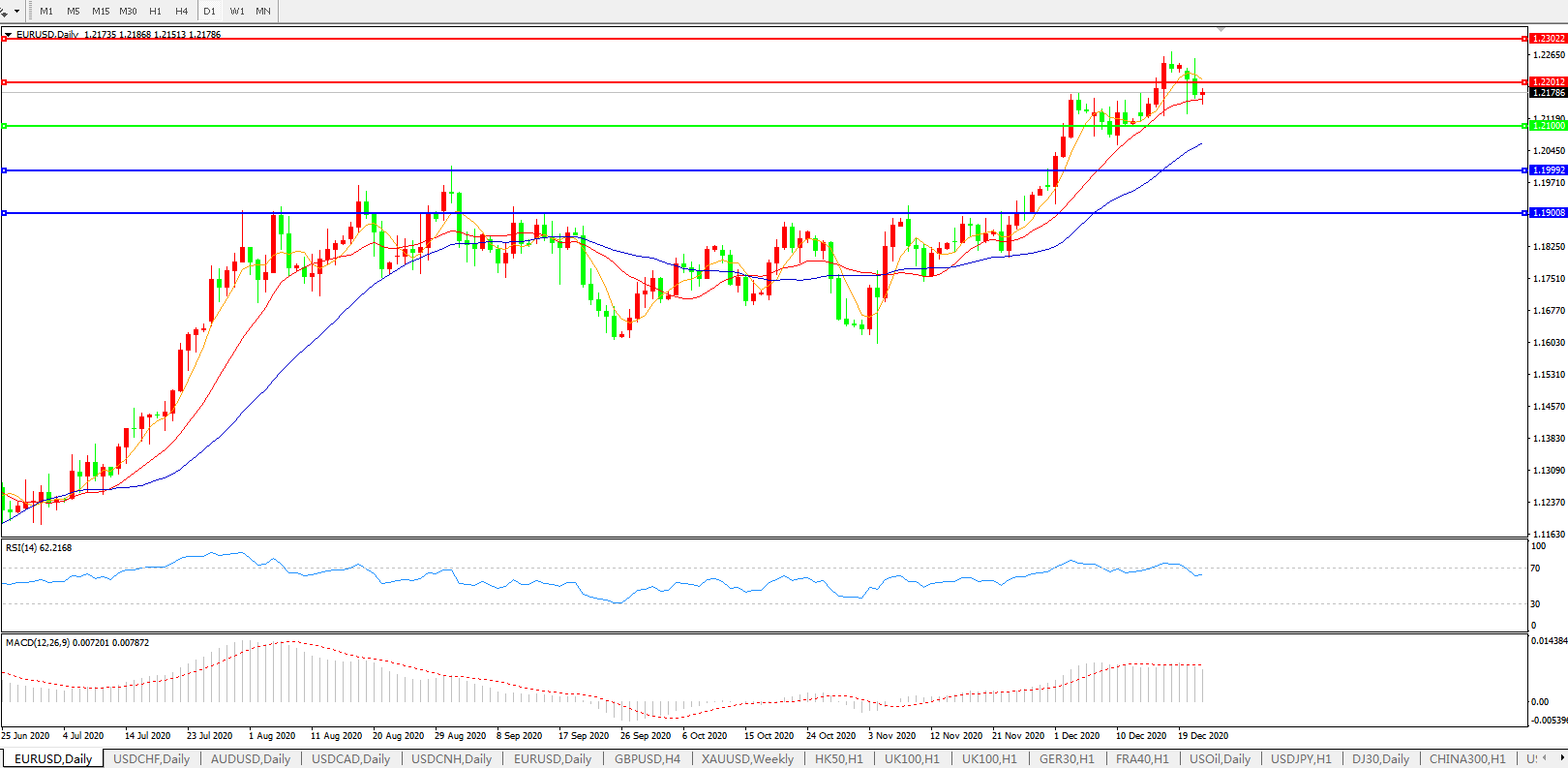 交易策略:1.2100上方看涨,目标1.2200、1.2300