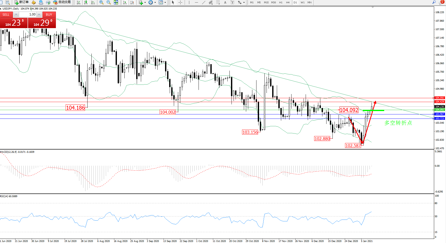 多空转折点:104.092