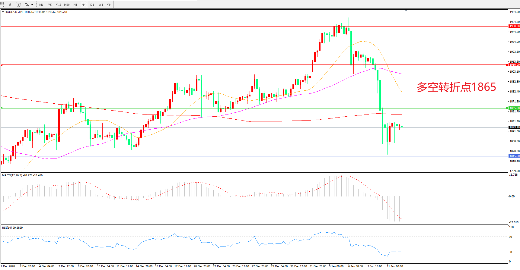 交易策略:在1865.00之下看跌,目标1815.00   1765.00