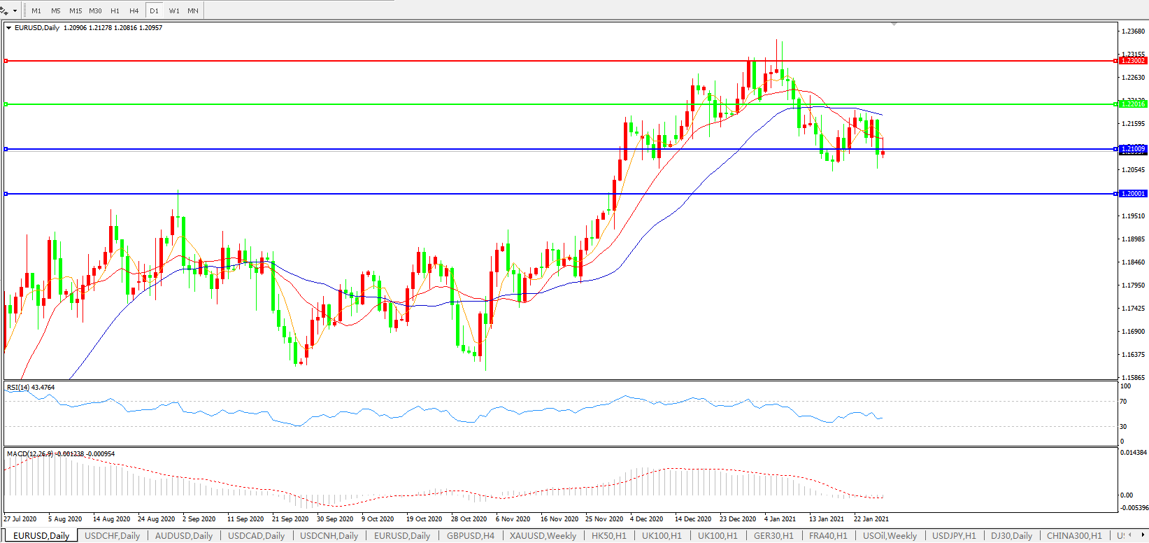 欧元兑美元跌0.40%至1.2111附近,跌至1月18日以来的最低水平;之前有报道称,欧洲央行官员相信投资者很大程度上排除了进一步降息的可能性,为此他们达成共识,认为需要强调降息仍是可行选项。由于第二次新冠病毒封锁,周三德国政府将其对欧洲最大经济体今年的增长预测大幅下调至3%,大幅修正了去年秋季4.4%的预测,这使欧元进一步承压。