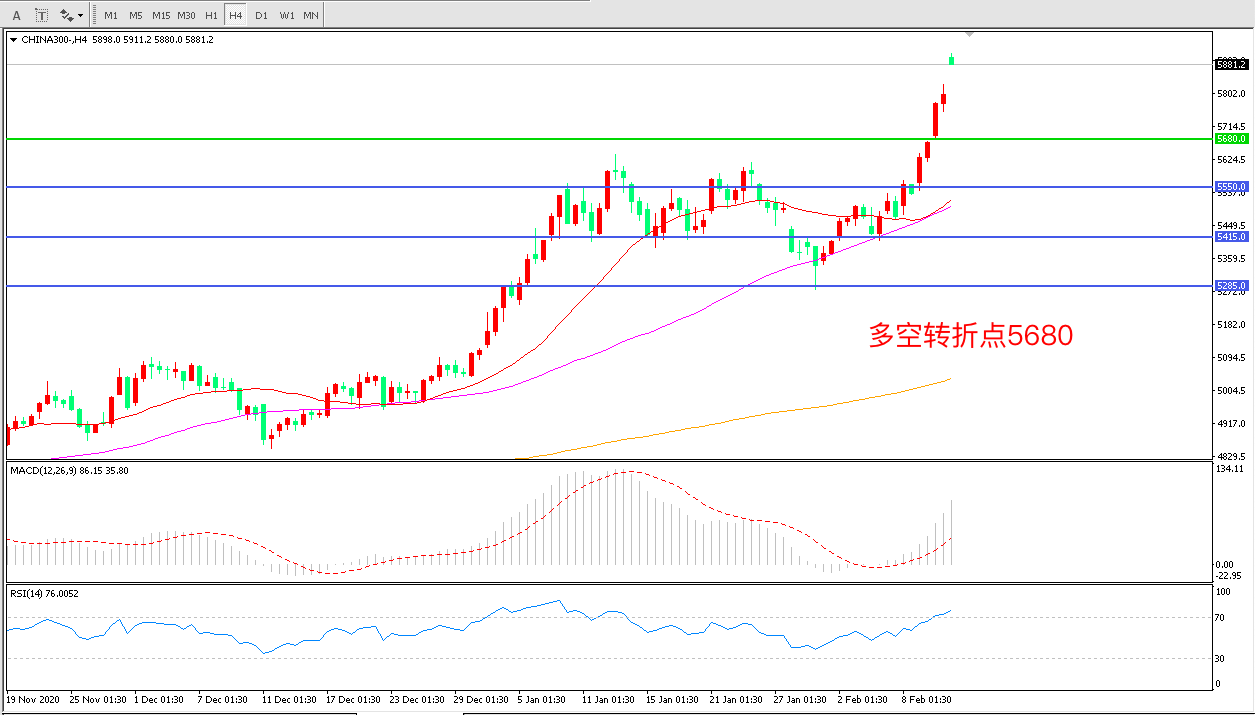 交易策略:在5680.00之上看涨,目标5800.00 5950.00