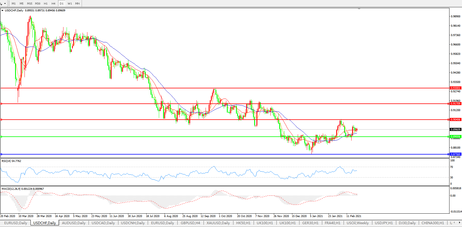 交易策略:0.8900上方看涨,目标0.9040、0.9170
