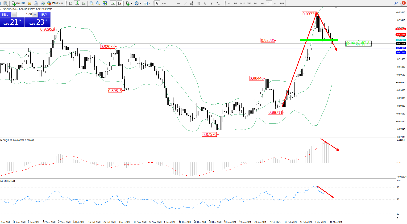 备选策略:0.92385上方看涨,目标0.92663、0.92952