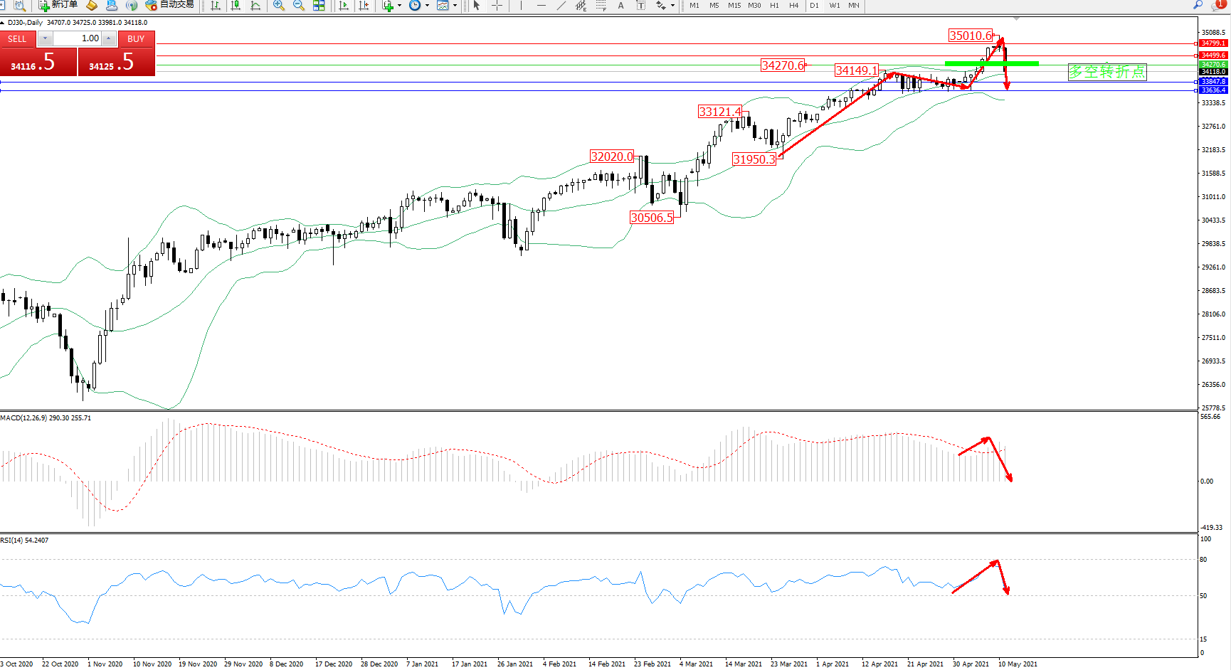 技术点评:多头动力延续布林带指标通道中上轨区间持续震荡上扬,高位抵达35010附近节点后遇阻回撤,急速下挫至布林带指标中轨估计节点,有继续下行态势,布林带指标呈张口走势后开始缓慢收口,MACD指标处于多头区域维持持续震荡中,RSI指标处于多头区域高位拉升后遇阻反转向下移动走势良好;
