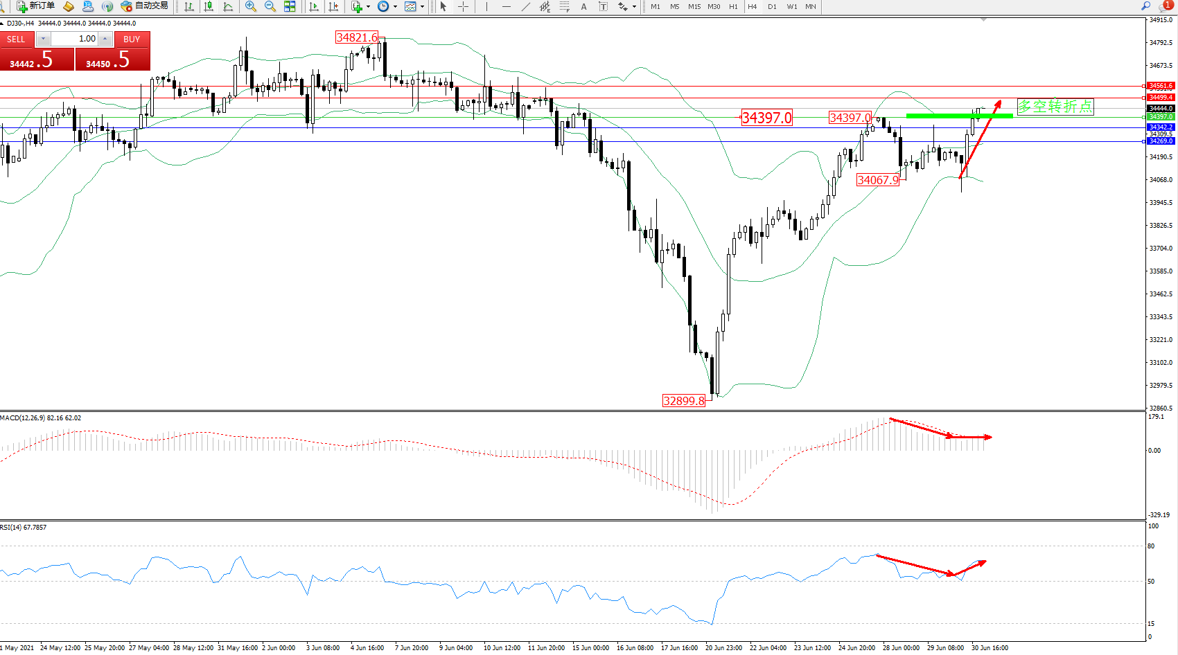 道琼斯指数6月30日(周三)收盘上涨211.14点,涨幅0.62%,报34503.43点;美国6月ADP就业人数好于预期,但自新冠疫情爆发以来,美国非农就业与ADP“小非农”之间的关联显著变低。投资者权衡经济复苏与高传染性Covid-19变异病毒的风险,全球对高传染性新冠病毒毒株的担忧加剧,提振美元需求,市场在周五非农就业数据公布前建立美元看涨期权头寸。