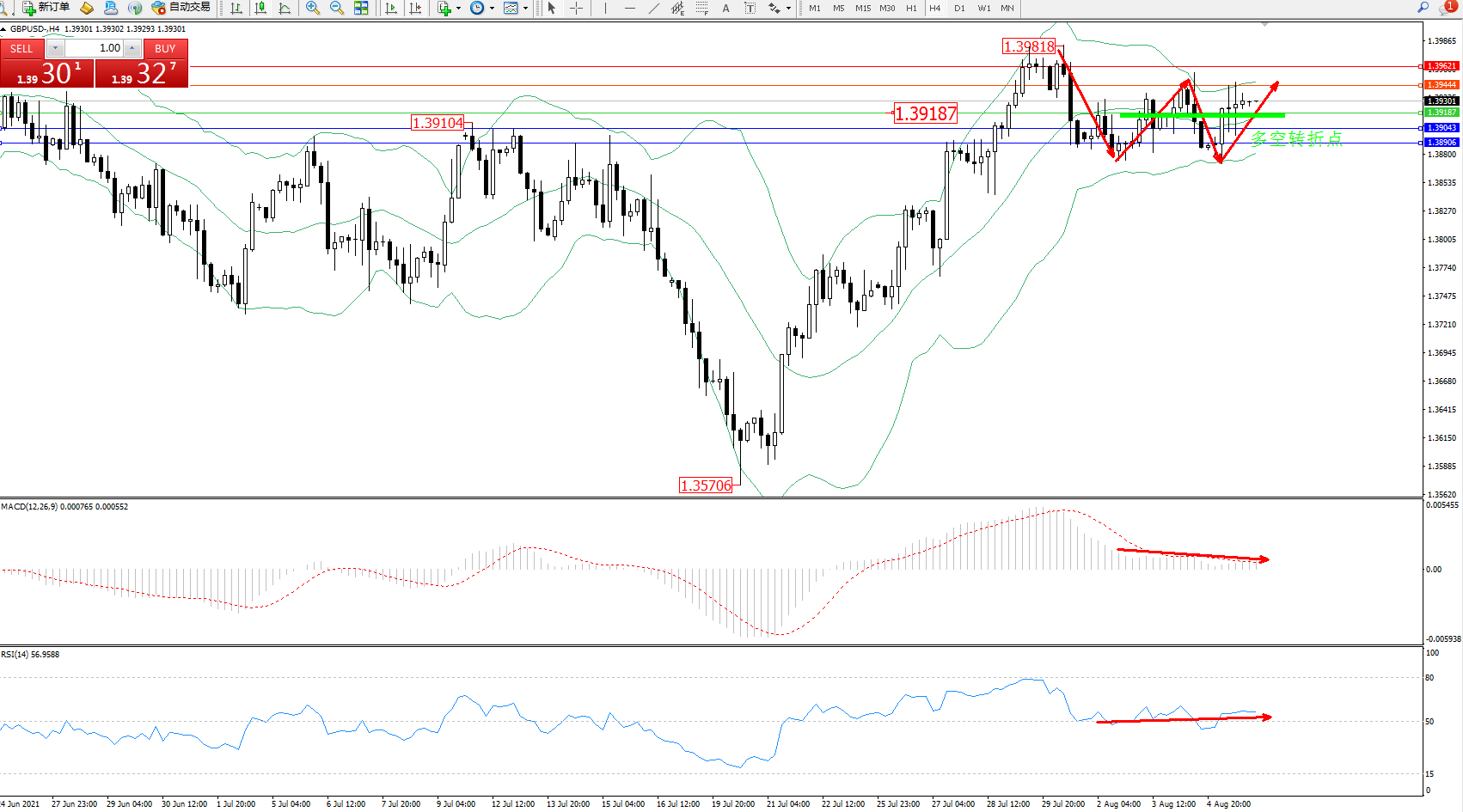 交易策略:1.39187上方看涨,目标1.39444、1.39621