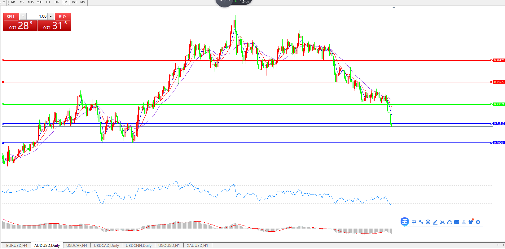交易策略:0.7400下方看跌,目标0.7240、0.7080