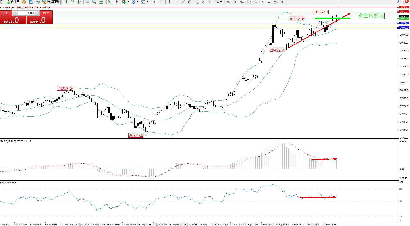 日经225指数9月13日(周一)收盘上涨24.16点,涨幅0.08%,报30406.00点。日本自民党总裁竞选人岸田文雄:将为首相设立一个人权顾问职位。需要加强海岸警卫队的能力。不会放下平衡财政的主张。作为来自广岛的立法委员,与拜登总统合作,致力于在世界无核化方面取得进展。毫无疑问,过去的政策为日本经济带来了增长,但与此同时,经济差距扩大了。必须在尽可能广泛的行业和地区范围提高收入和工资。
