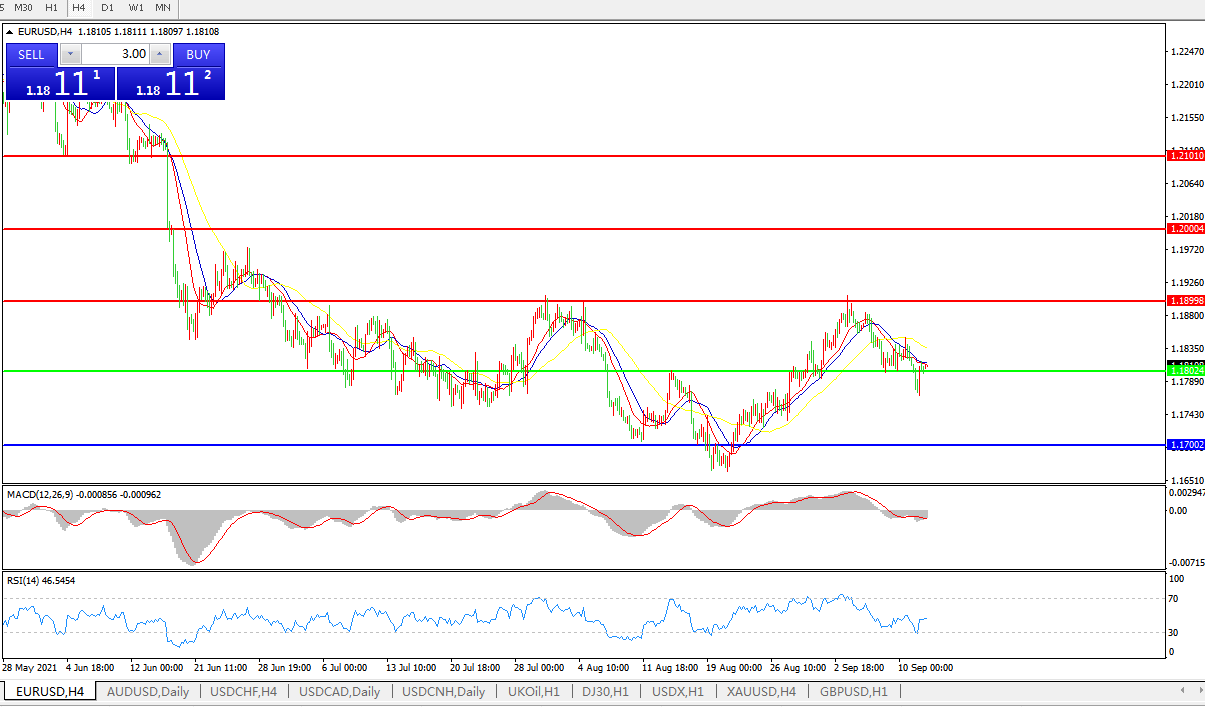 备选策略:1.1800下方看跌,目标1.1700、1.1600