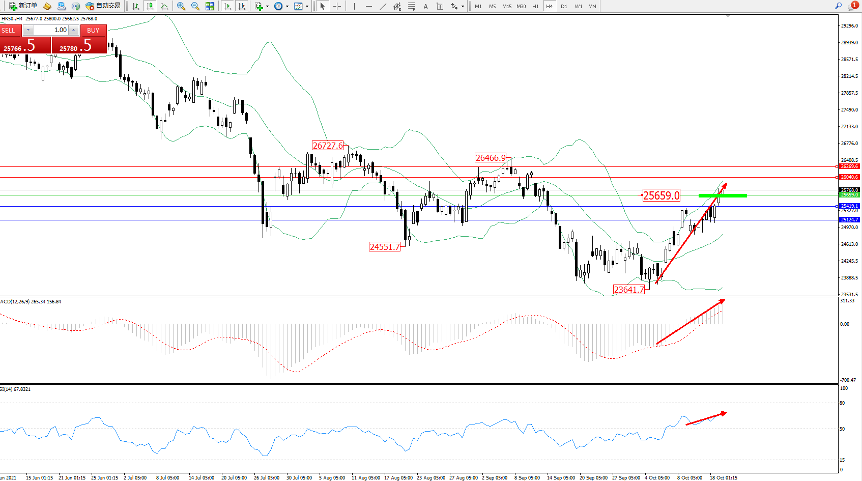 交易策略:25659上方看涨,目标26040、26269