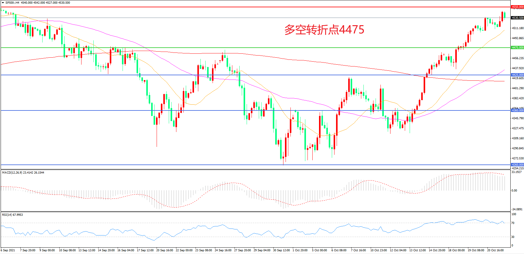 周四(10月21日),美国首次申请失业救济人数超预期下降,再创疫情爆发一年半来新低,,9月美国成屋销售户数创八个月新高,靓丽的数据表现推动风险情绪回暖,标普500震荡上行,收报4529点。经历过一个悲惨的 9 月,美股在金秋十月稍稍抬起了头,强劲的公司业绩将继续推动美股反弹。