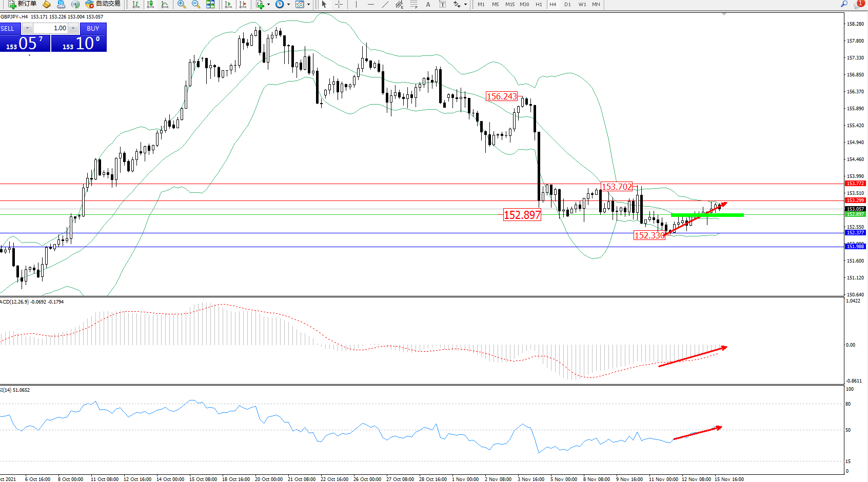 英镑兑日圆维持153.095附近整理,过去一个月英国的经济学家们变得更加偏鹰,他们预测对通胀的担忧升温将促使英国央行在12月加息。 这些经济学家还预测央行将把基准利率维持在0.1%的纪录低位直至明年5月。现在预计下个月英国利率将升高至0.25%。这将使英国成为疫情以来首个加息的主要经济体。调查在11月4日央行政策会议后的一周进行,英国央行官员在当日的会议上警告,未来几个月需要提高利率从而使通胀回到2%的目标水平。市场已经计入央行在年底前加息25个基点的预期,此后的加息预期进一步升温。对于决策者而言,劳动力市场可能是决定因素。近期的调查显示,劳动力短缺正在恶化并推高薪资。英国央行担心,如果不加以控制,这些压力可能会导致通胀在经济中广泛蔓延。