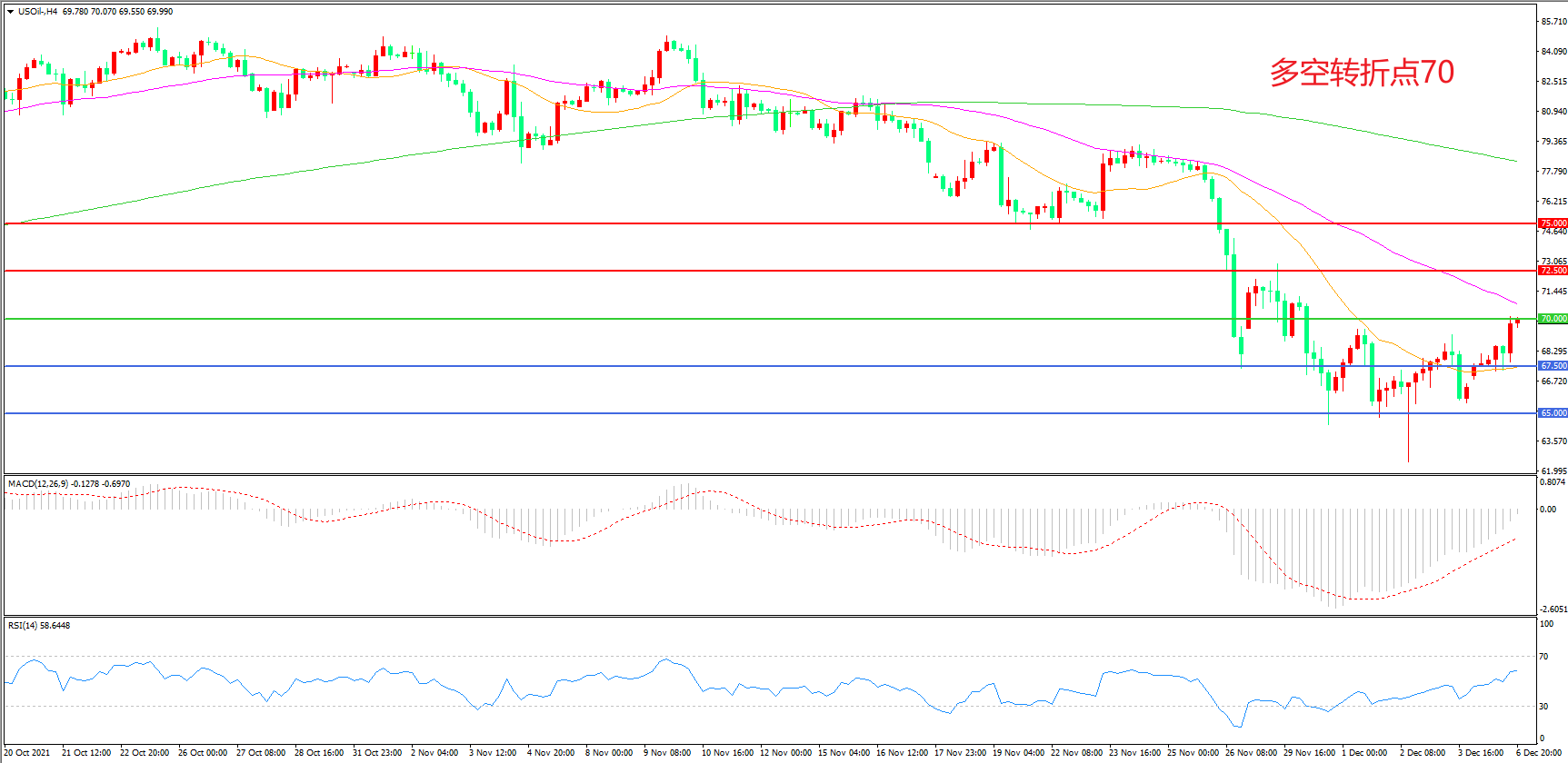 多空转折点:70.00