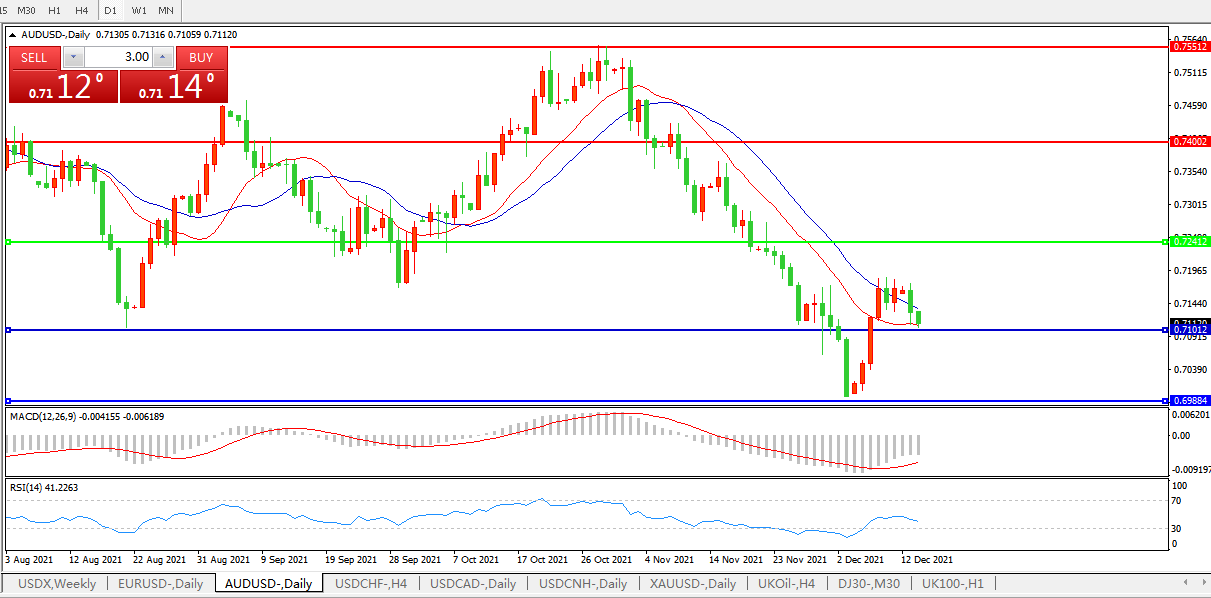 交易策略:0.7240下方看跌,目标0.7100、0.6980