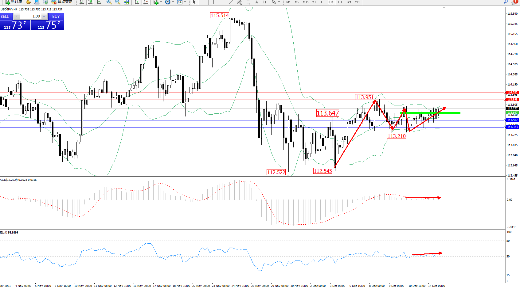 交易策略:113.647上方看涨,目标113.898、114.032