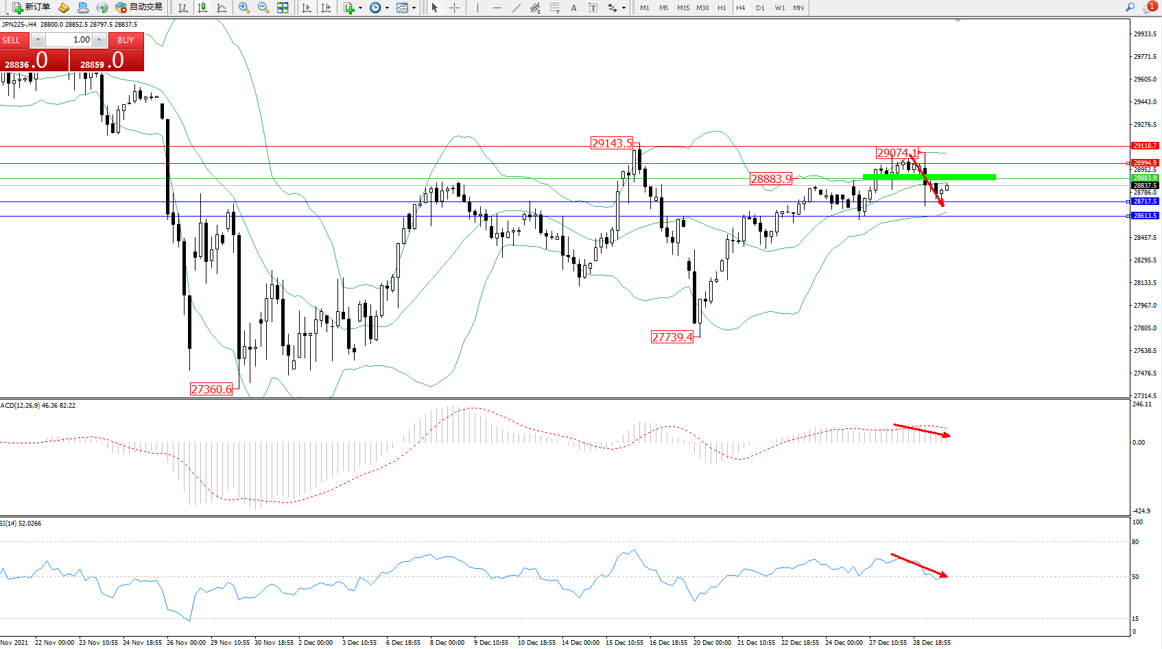 日经指数JPN225——4小时K线图显示: