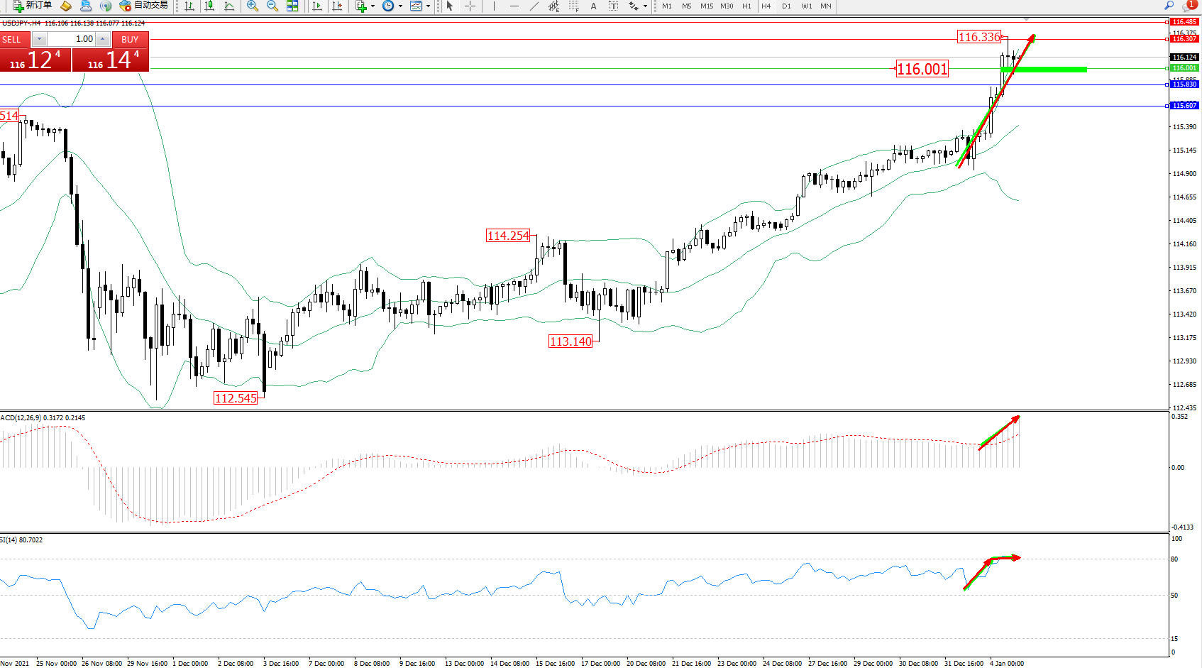 美元兑日圆维持116.124附近震荡,受美国国债收益率飙升提振,尽管新冠肺炎病例激增,但交易员押注美联储将提前加息。美元兑日元自2017年1月11日以来首次飙升至116高位,长期国债收益率隔夜飙升,自11月24日以来首次达到1.638%。美国国债收益率隔夜跳涨,助长了美国和日本利差将扩大的预期。日本进口商也出于结算目的购买了美元。后市美元将继续被买入,因预计美联储2022年将多次升息。