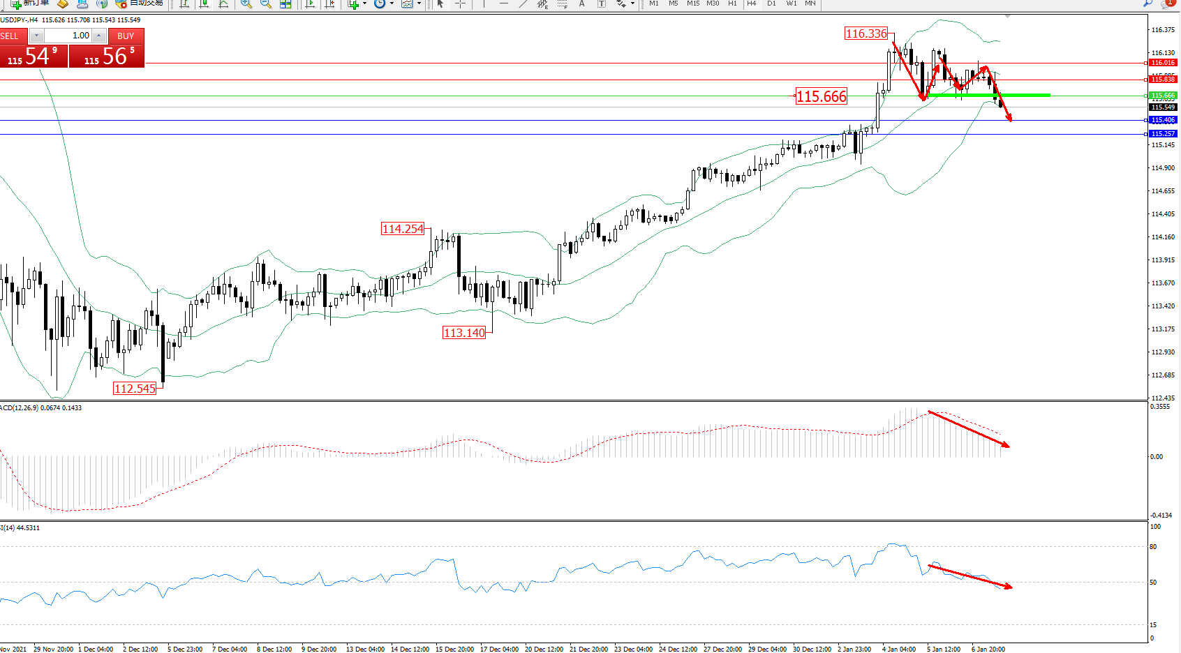 交易策略:115.666下方看跌,目标115.406、115.257