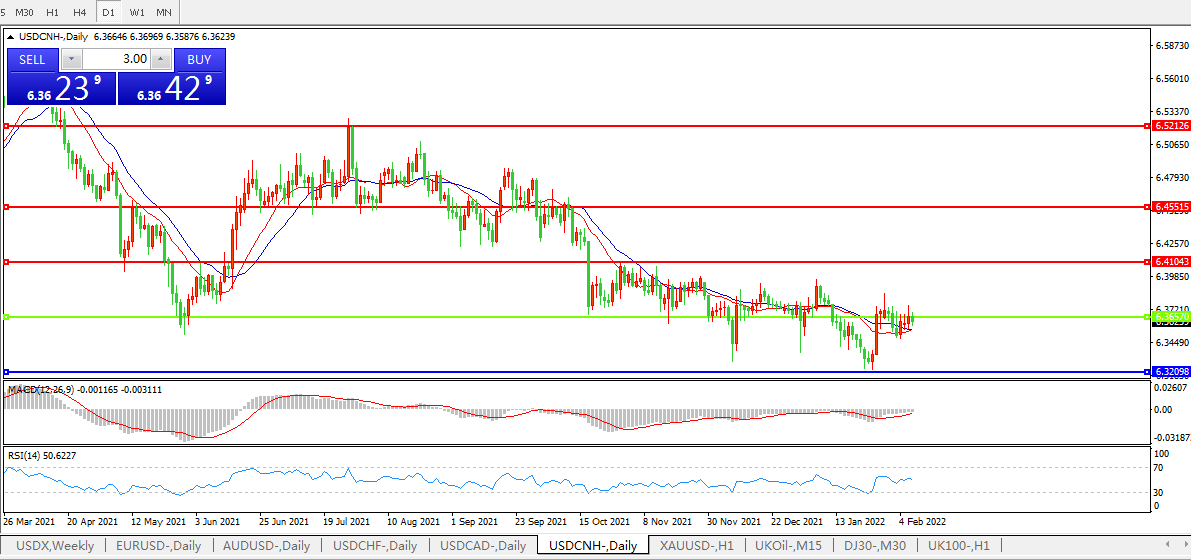备选策略:在6.3650之下,看跌,目标价位为6.3200,然后为6.2800。
