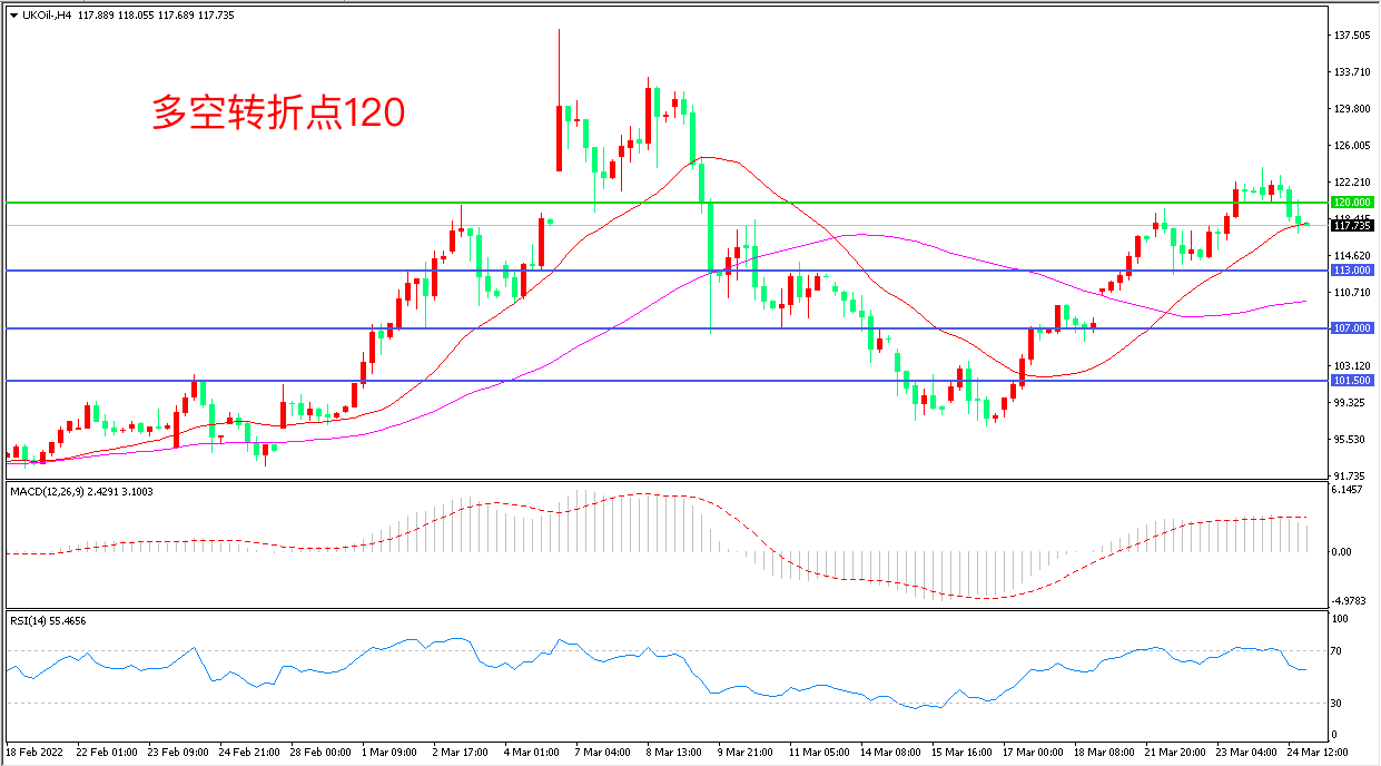 交易策略:在120.00之上看涨,目标125.50           130.00