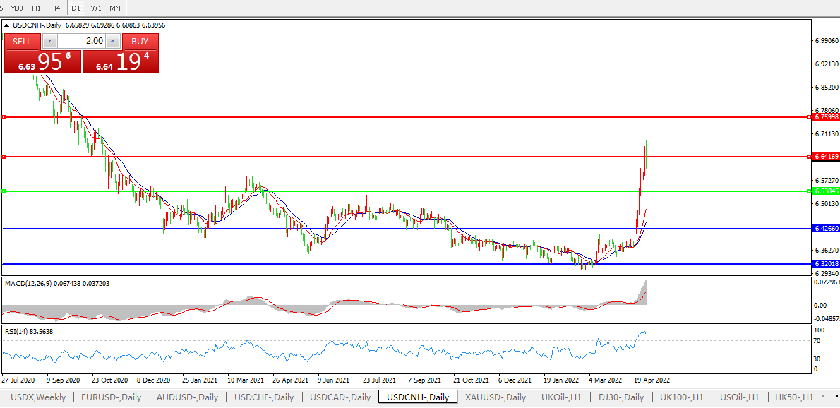 技术面简析:日图均线多头排列,汇价加速上行,MACD运行于0轴上且量能小幅放量,RSI走升,预计短期汇价大概率将进一步上行。