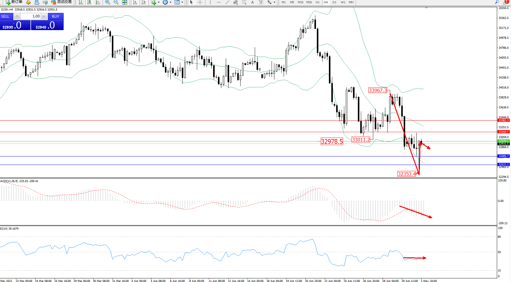 交易策略:32978下方看跌,目标32685、32522