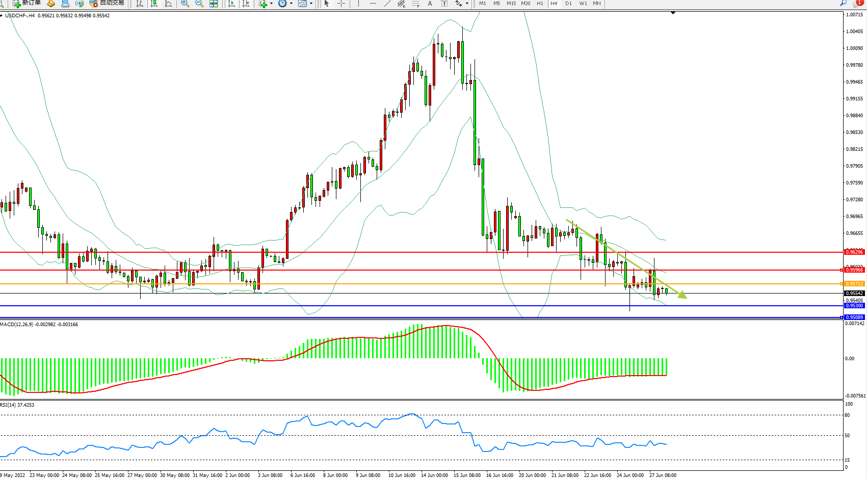 交易策略:0.95713下方看跌,目标0.95300、0.95089