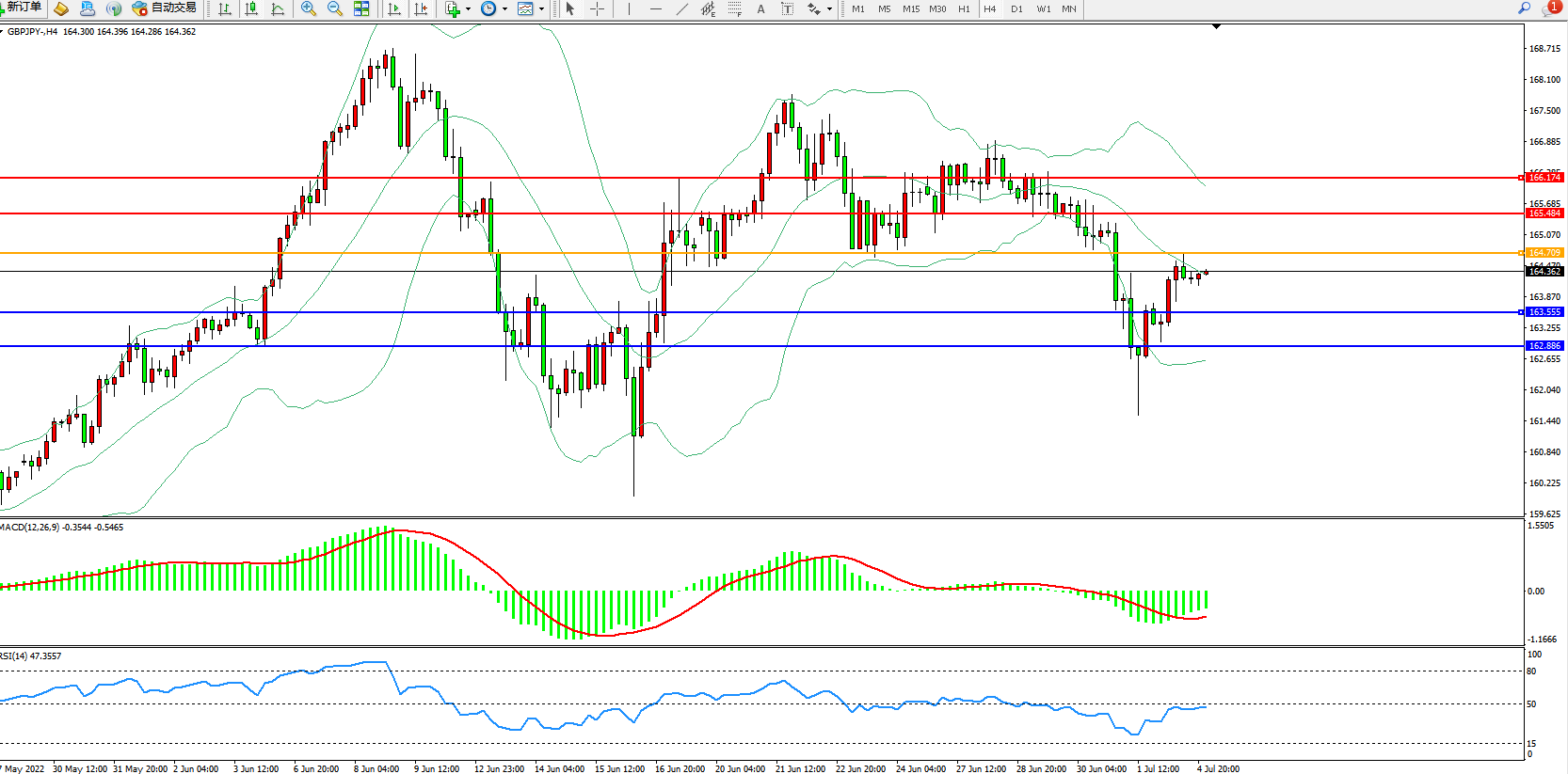 英镑兑日圆维持164.362附近震荡,英国央行目前政策利率已低于美联储50个基点。英国央行行长安德鲁?贝利的语气也较为温和,称央行不一定必须采取“有力”行动来控制通胀。对更大幅度加息的预期有所缓和。