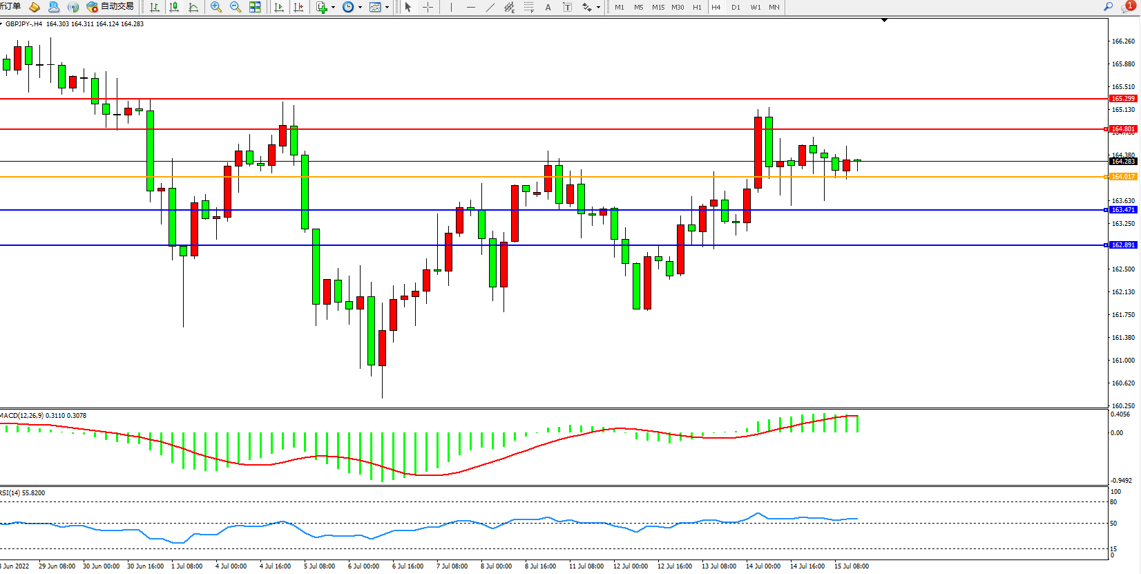 交易策略:164.017上方看涨,目标164.801、165.299