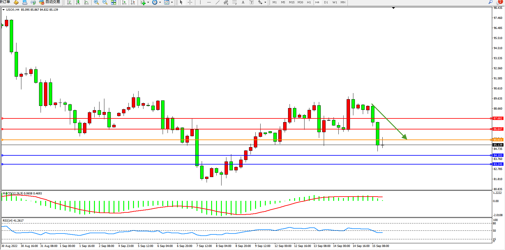 4小时图看:低位多头动力短期震荡上移,开始维持区间震荡,但市场空头情绪笼罩,再度整理下行,MACD指标处于多头区域维持整理下移至0轴线附近徘徊,RSI指标处于50均衡线下侧窄幅整理;