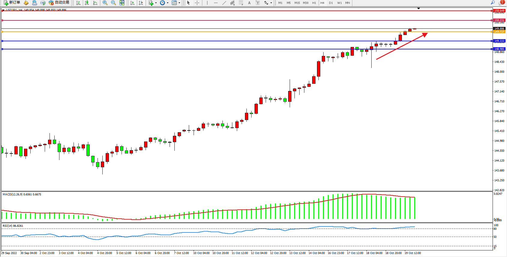 交易策略:149.737上方看涨,目标150.231、150.649