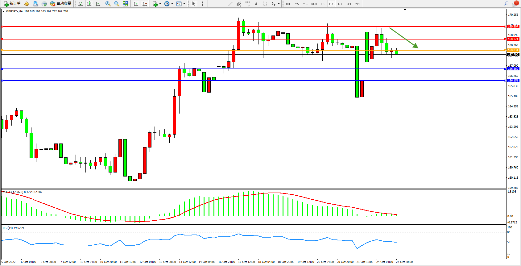 英镑兑日圆维持167.790附近震荡,苏纳克出任英国新一任首相,但英国经济可能会面临更艰难的时期,因为它正在努力摆脱日益恶化的衰退,甚至还有大选的前景——剧变可能会进一步扰乱市场。