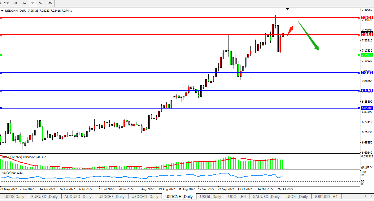 备选策略:在7.1500之下,看跌,目标价位为7.0500、6.9500