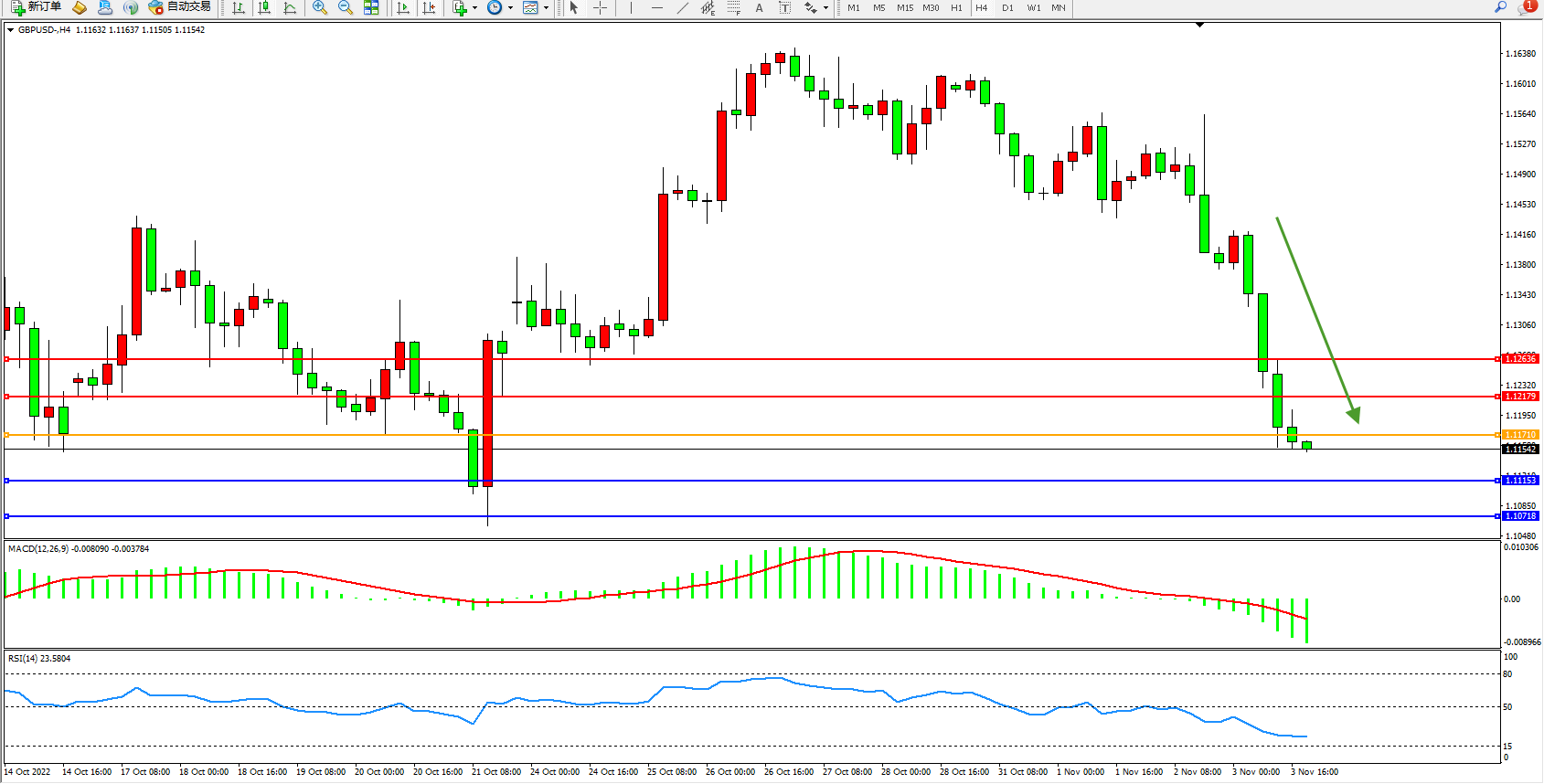 英镑兑美元维持1.11542附近震荡,英国央行加息75个基点至3.00%,符合市场预期,为33年来最大加息幅度。英国央行自去年12月已连续8次加息,利率水平达到2008年11月以来最高。