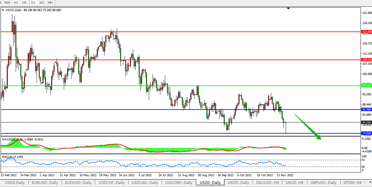 日线图看:油价加速下行后V型翻转, MACD量能柱0轴下方开始缩量,RSI止跌反弹,短期油价继续反弹概率较大。