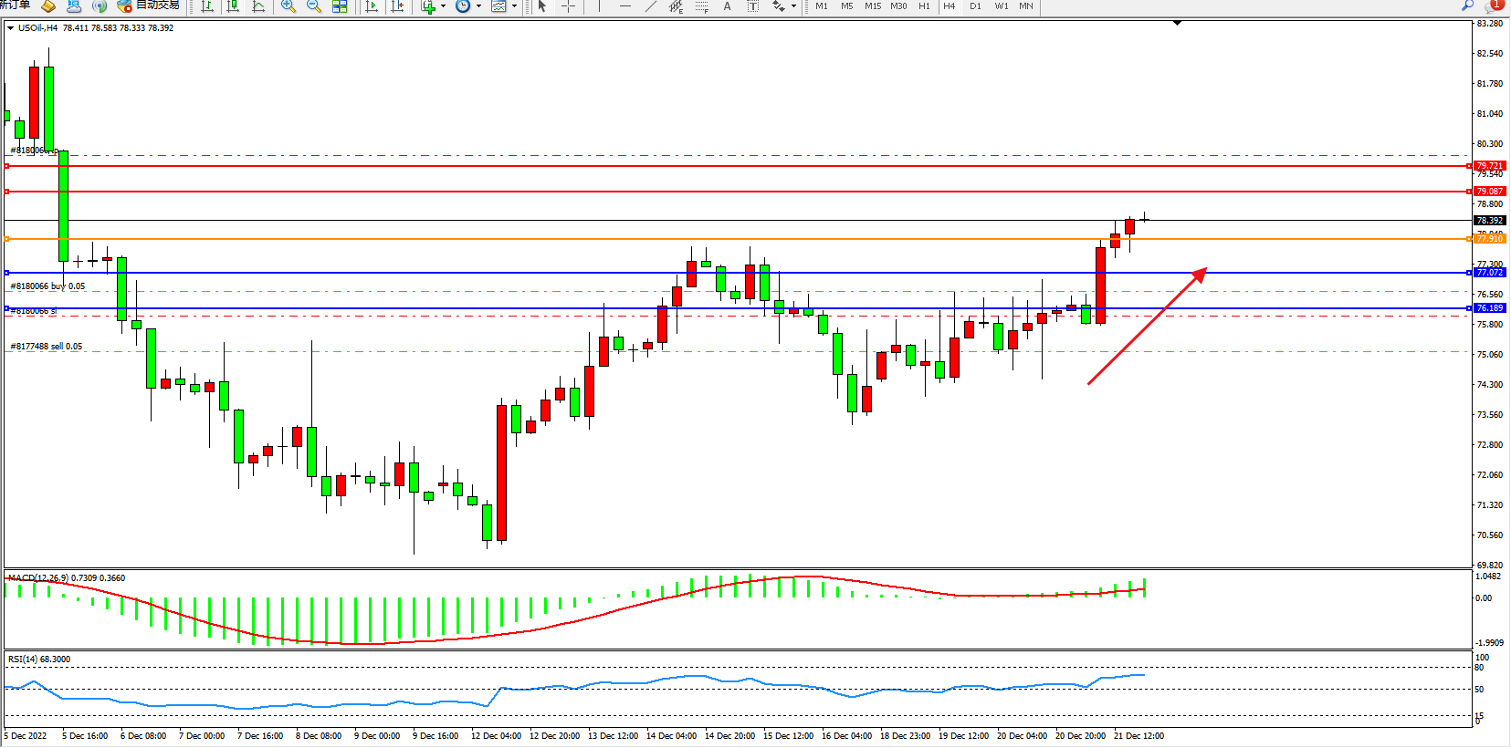 原油USOil——4小时K线图显示: