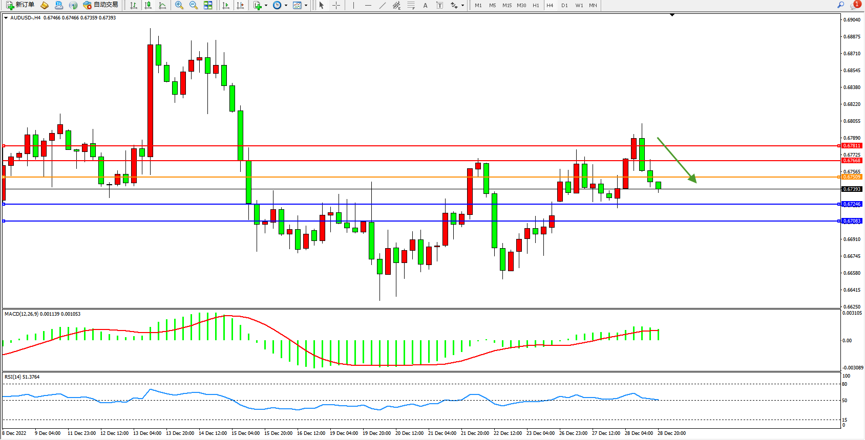 交易策略:0.67509下方看跌,目标0.67246、0.67083