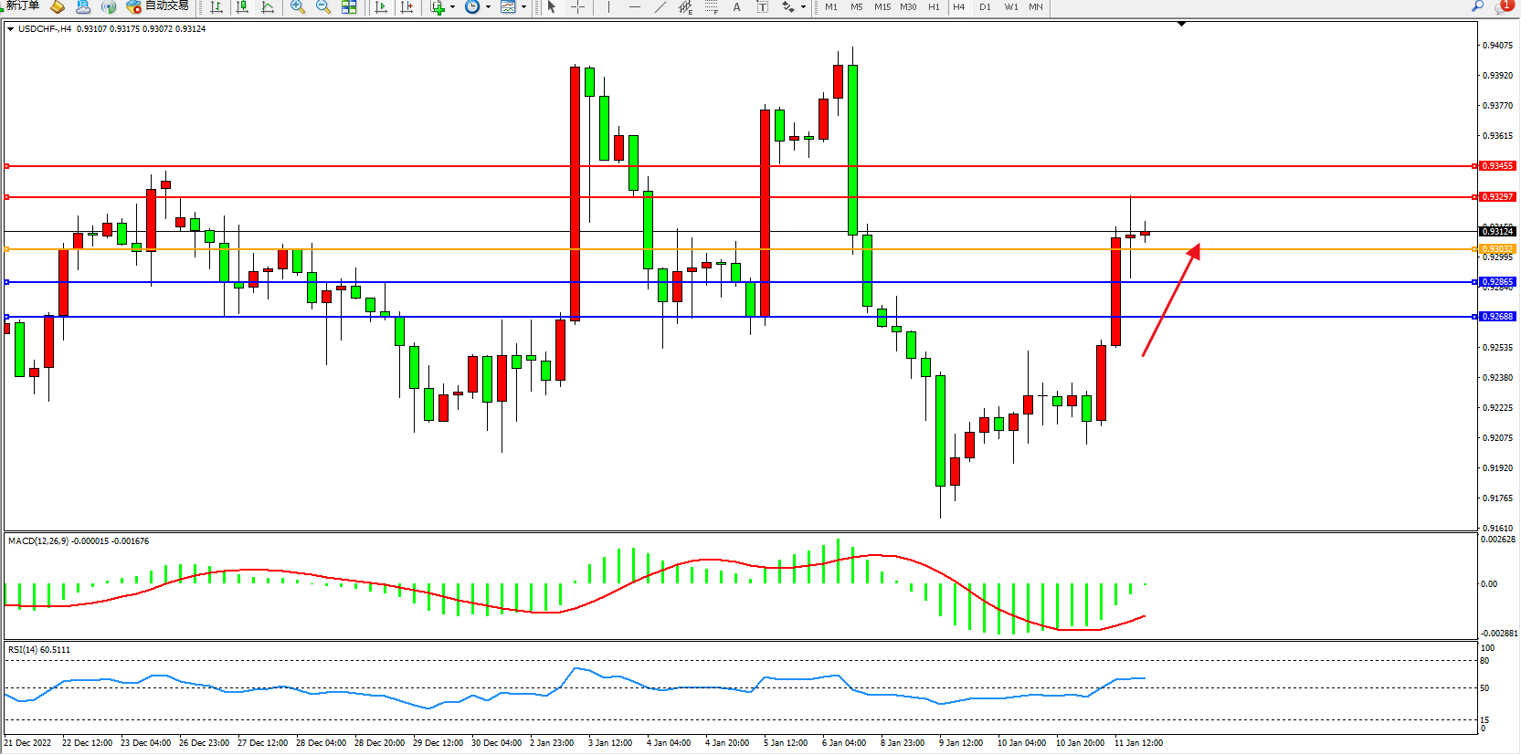 美元兑瑞郎维持0.93124附近震荡,市场现在倾向于美联储2月加息25个基点的可能性超过75%。投资者预计通胀进一步放缓,美联储鹰派加息需求减弱,美元将走软,瑞郎将复苏。