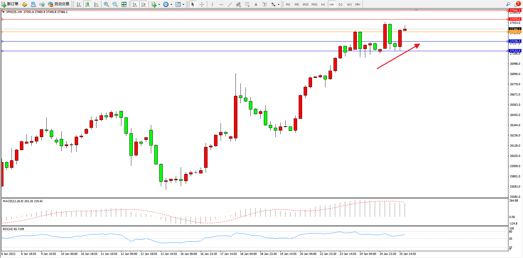 日经225指数1月25日(周三)收盘上涨73.31点,涨幅0.27%,报27372.50点。日本首相岸田文雄:具体的货币政策工具由日本央行决定,包括控制收益率曲线、负利率政策、买入ETF。将提名最合适的人选担任日本央行行长。现在没有关于修改政府和日本央行联合声明的评论。将在观察未来经济趋势的同时,对下一任日本央行行长人选做出适当决定。