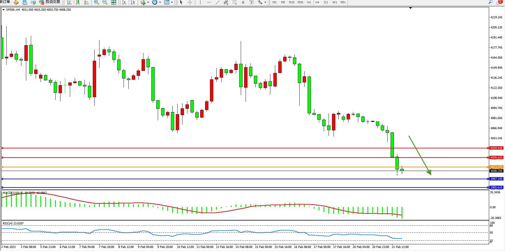 标普500指数2月21日(周二)收盘下跌80.55点,跌幅1.97%,报3998.54点;美国2月Markit服务业PMI初值 50.5,预期47.5,前值46.8,重回荣枯线上方,为2022年6月以来新高。