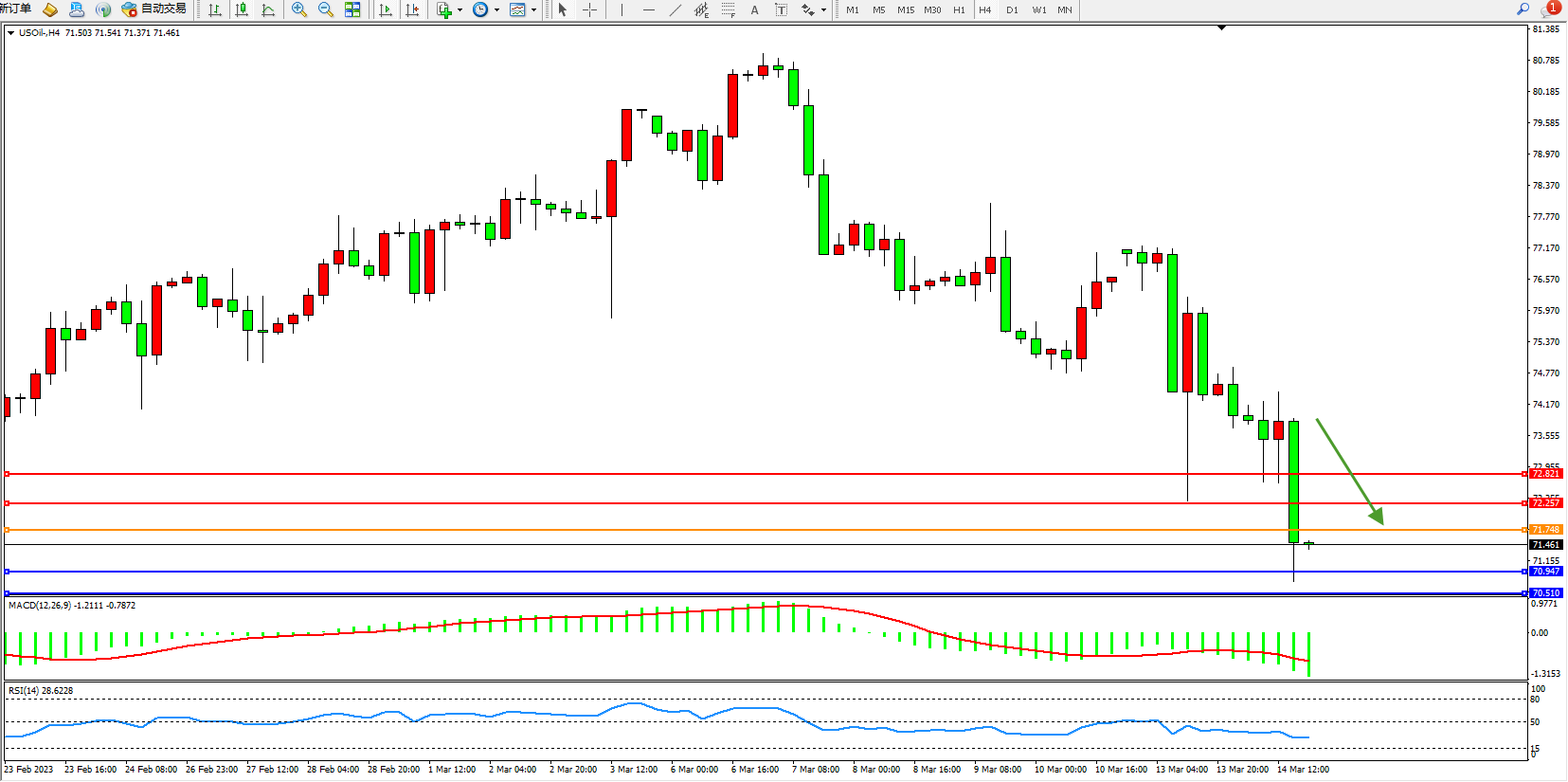 4小时图看:空头动力持续震荡下挫,低位空头情绪笼罩,短期不断持续向下移动,MACD指标处于空头区域持续下移,RSI指标处于空头区域弱势徘徊;